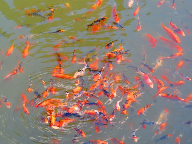 金魚、鯉の稚魚が沢山泳いでいました -