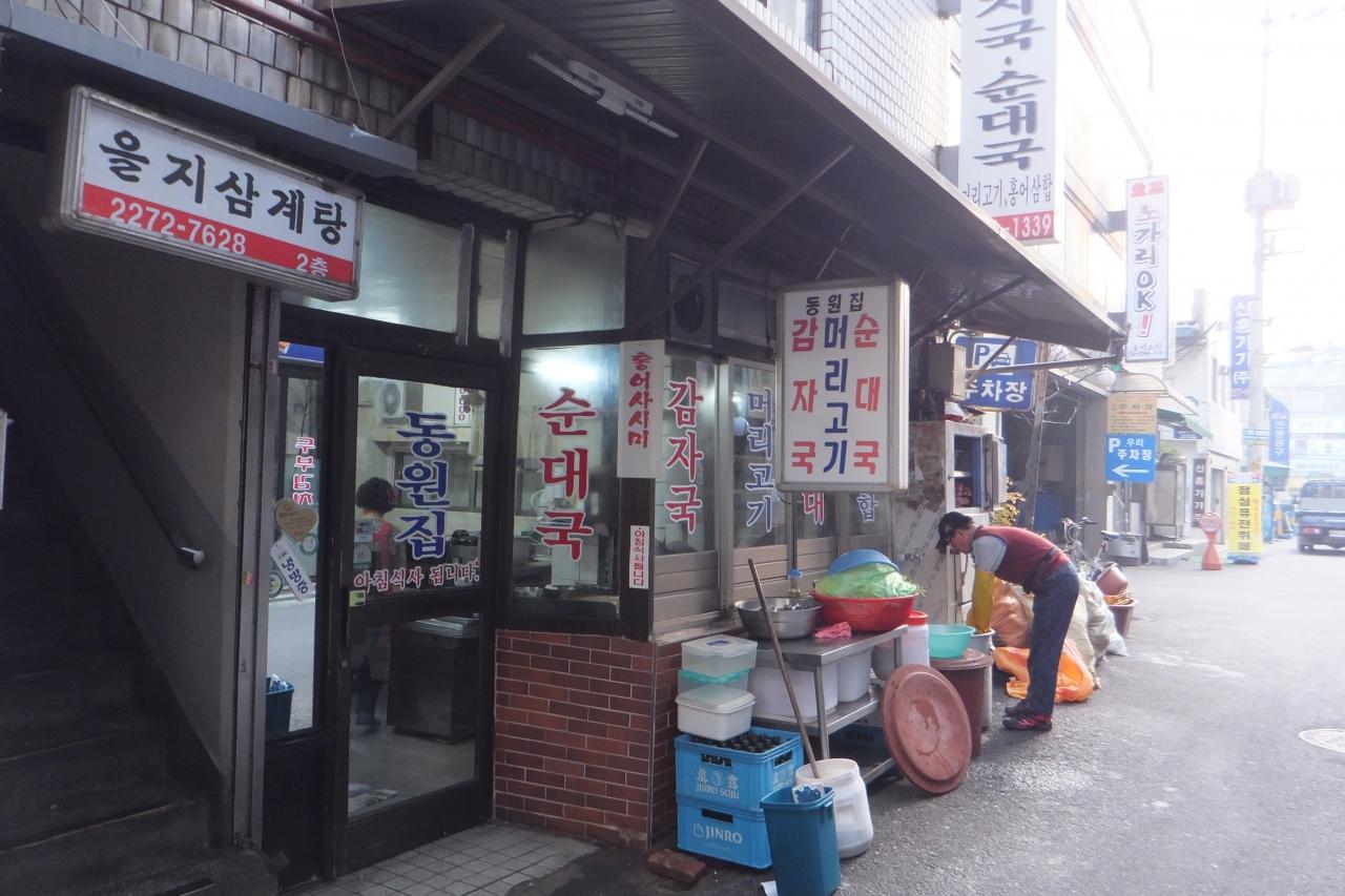 朝ごはんにスンデを食べに乙支路3街のドンウォンチプに来ました。