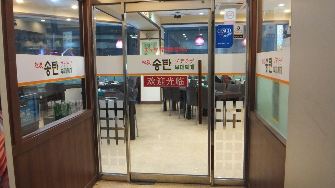 夕飯は明洞の松炭プデチゲ
