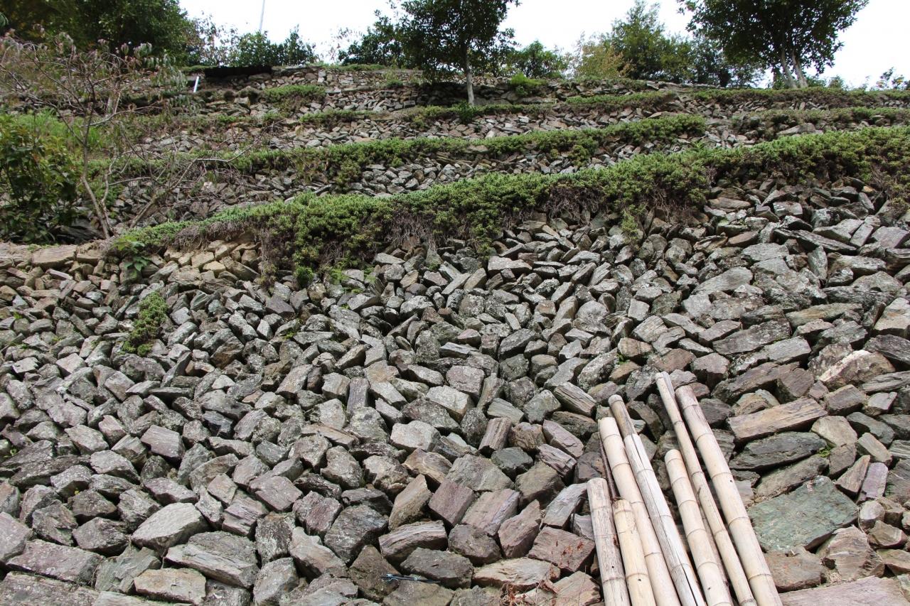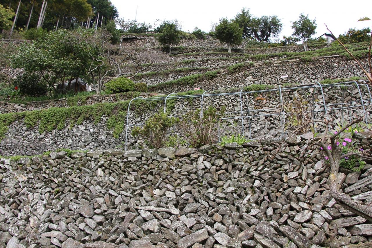 険しい石積みにはいろんなものが植えられています。