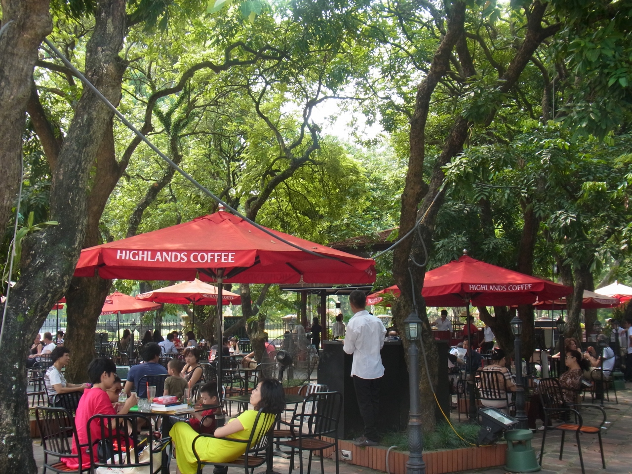 ハイランドコーヒーの裏にはタンロン遺跡の国旗掲揚塔が見えます。