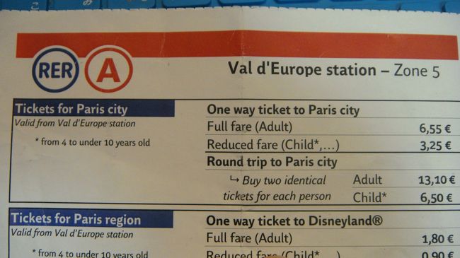 パリ市内へ行くには上の切符で、メトロ、トラム、バス、RER線の電車(一部区間まで)が乗れるのですが、郊外へ出る場合、下の切符のように必ず行先の駅を指定して切符を買ってください。(ちなみにこの写真はディズニーランドの駅からホテルの駅まで)。