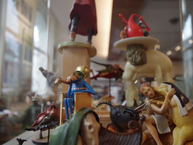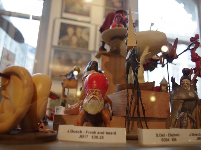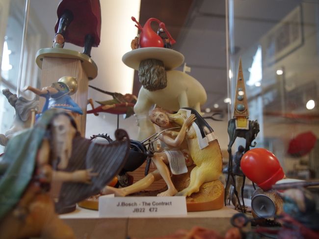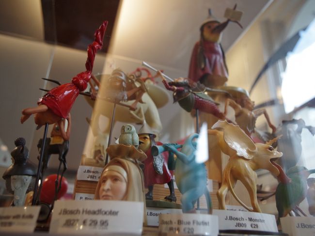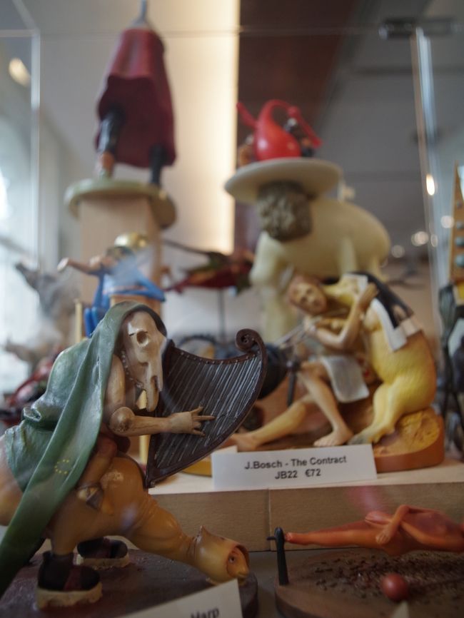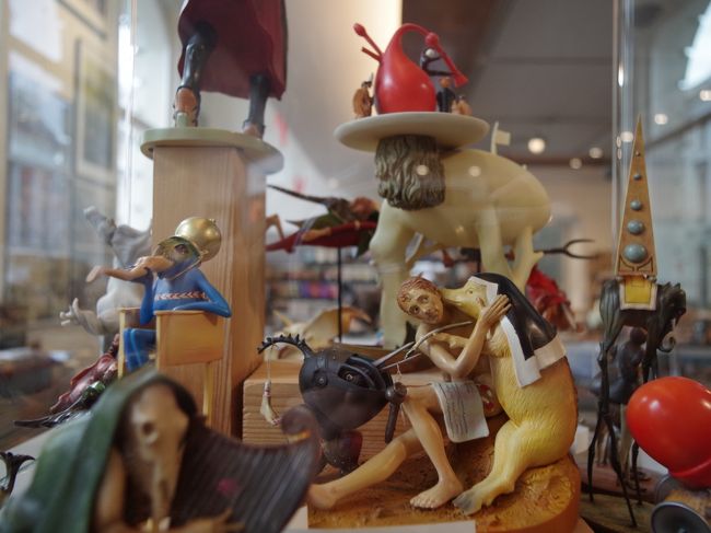 お土産コーナーにあったブリューゲルの絵の中にいた生き物たちのフィギュアに興味津々!!