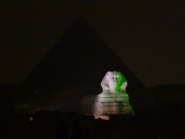 夜は「ピラミッド音と光のショー」。ショーはドラマ仕立てになっています。