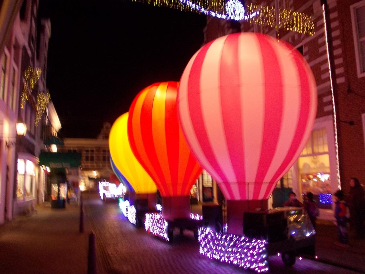 ハウステンボスのヨーロッパの街並みをきれいにライトアップされています。