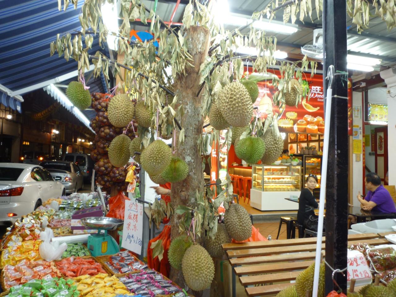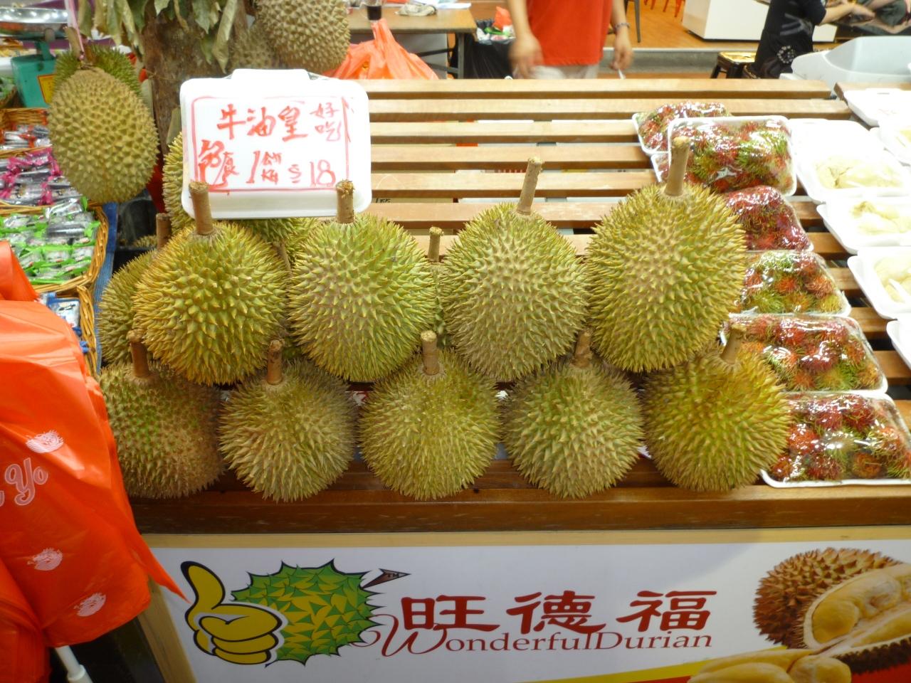 イヤがる私達にお店のおじさんがパックの蓋を開けようとする仕草。。こんな熟したドリアンのパック詰めをこんな高温多湿の常温に置いてていいのかなと少し心配