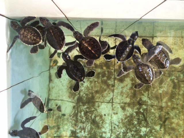 小さな海亀はおもちゃみたいで本当にかわいい。施設の中では70パーセント位が生まれるらしい。この施設も津波によって大損害を受けたらしい。数年前にアルビノの海亀もいたが、海に帰してしまったらしい。