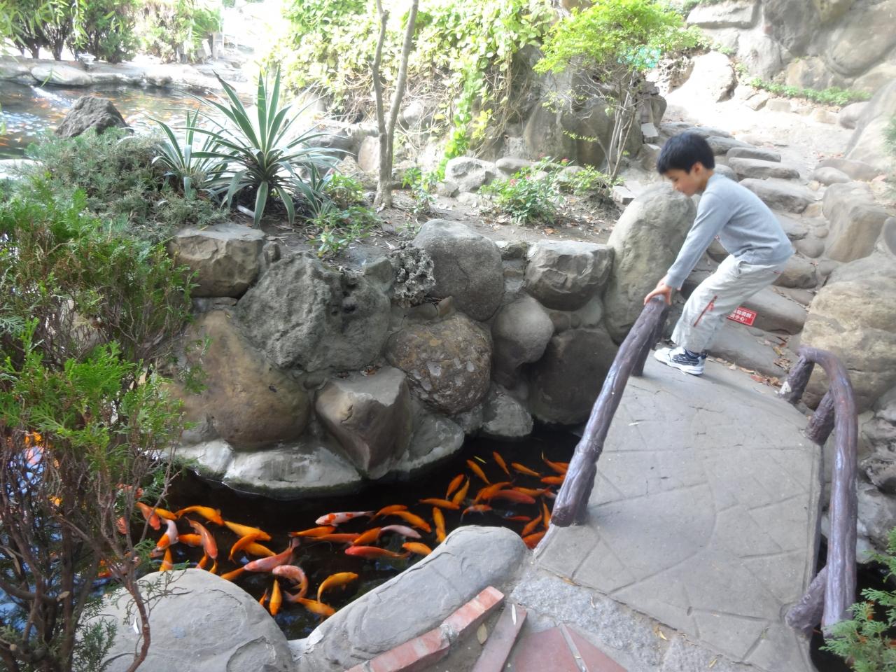 庭で鯉を眺めています。