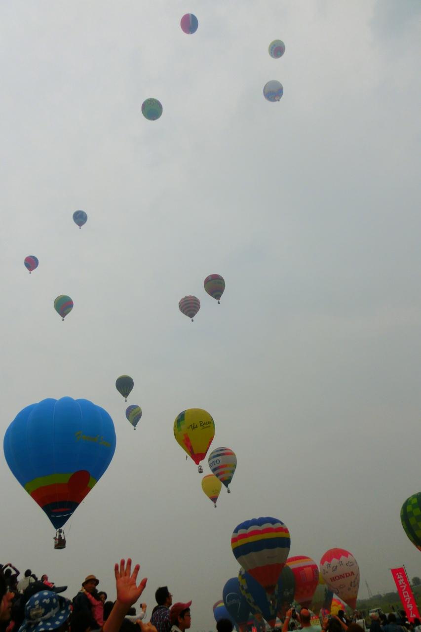 迫力に圧倒されて、子供のように気球に手を振りました。