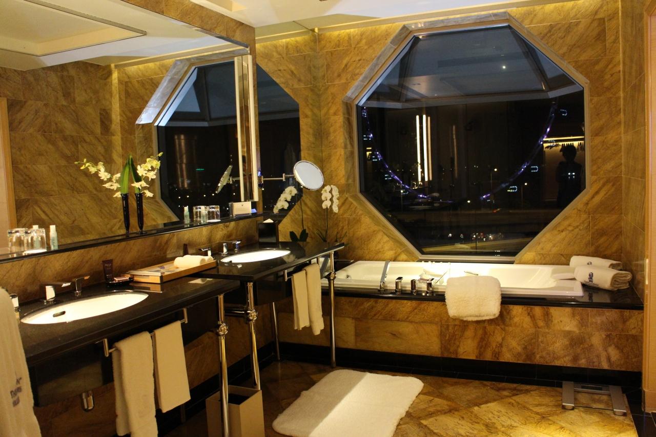 広めのバスタブにつかりながら外を見ると八角形の窓の外にはシンガポールフライヤーがゆっくりと回っていました。
