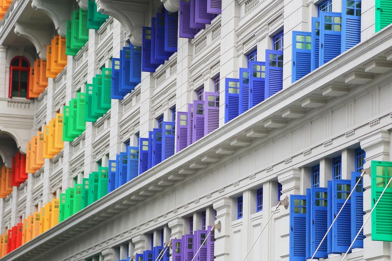 シンガポールはかわいい色合いの建物がイッパイ目につきます。