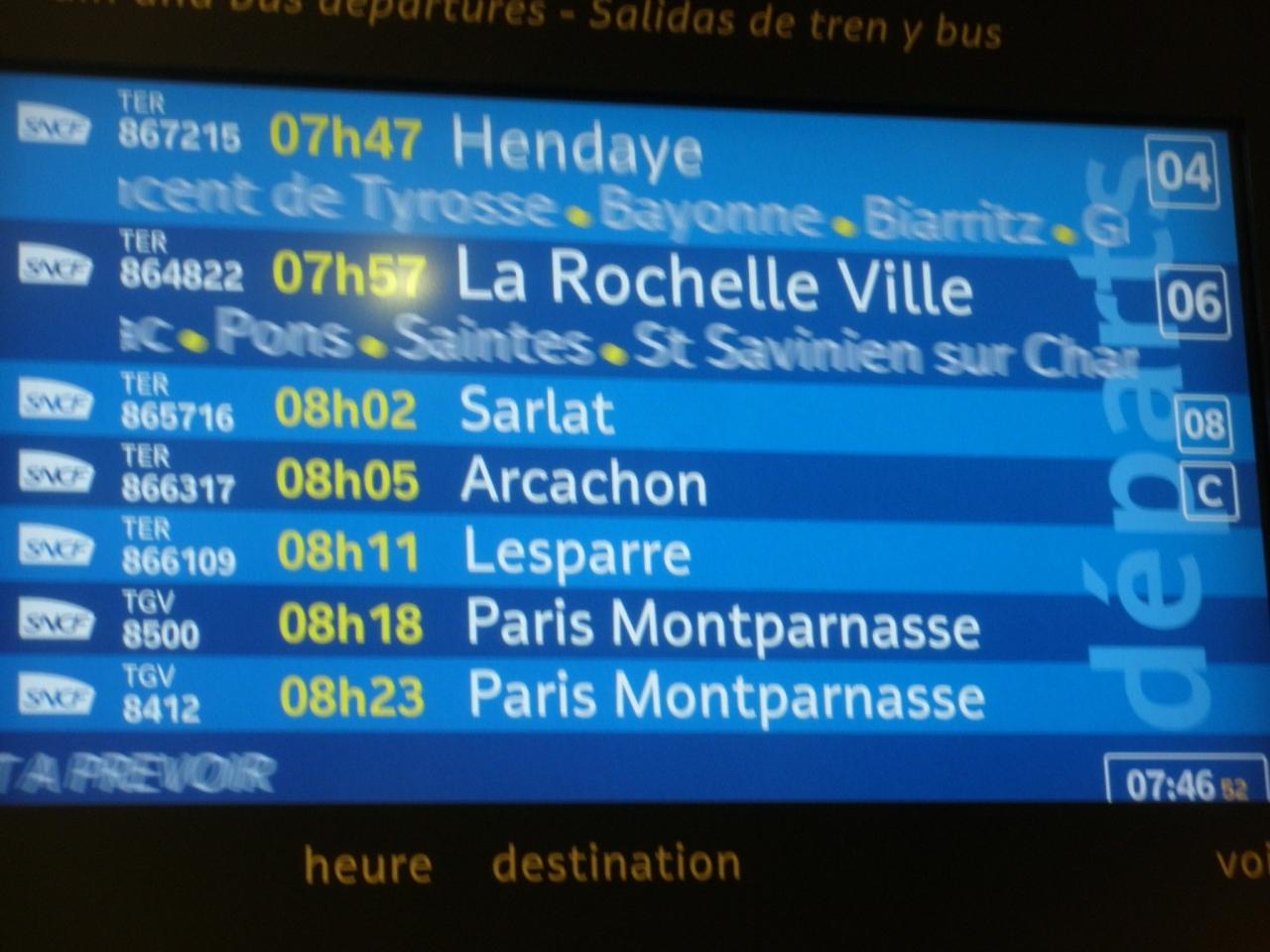 朝食時間を早めにしてもらって、8:02発の Sarlat 行きに乗ります。