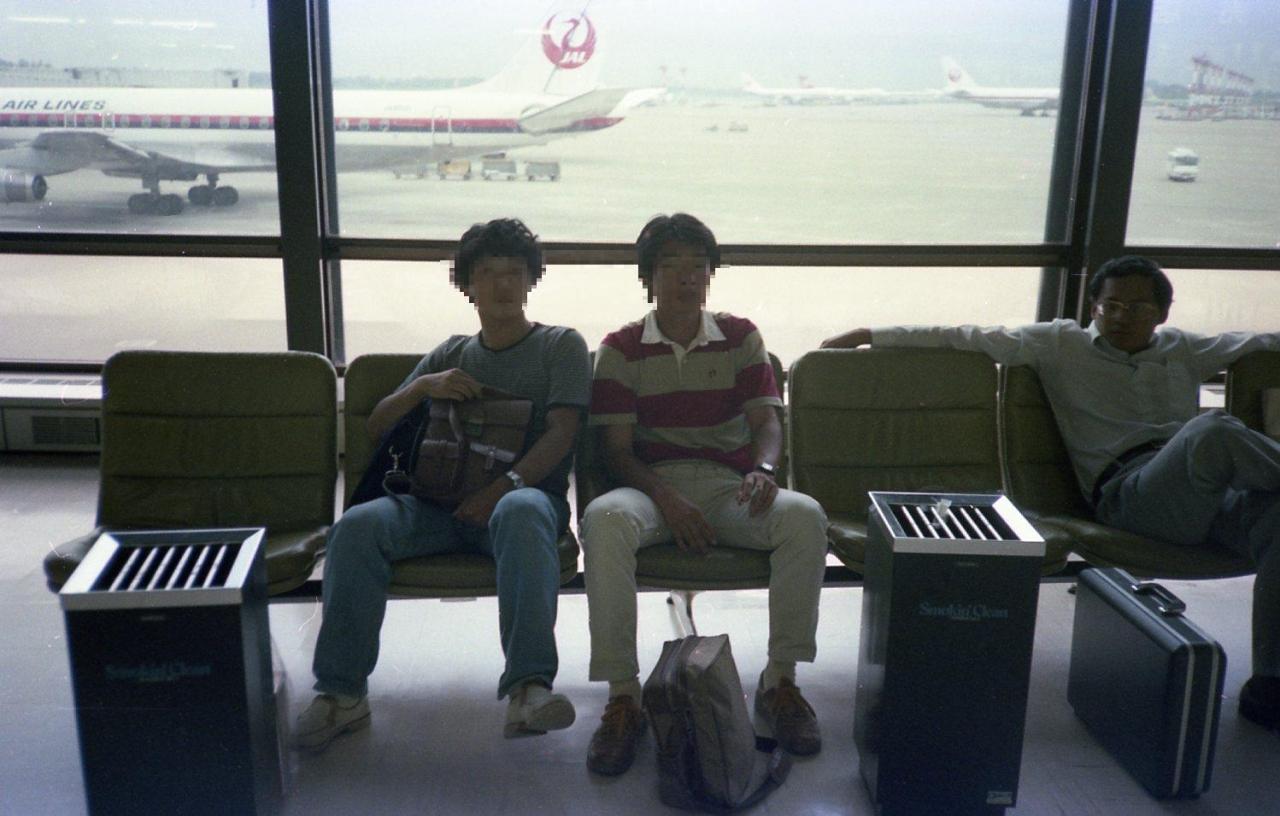 この写真は出発前の成田空港で撮ったものだと思います。隣の人が誰かどうしても思い出せません。