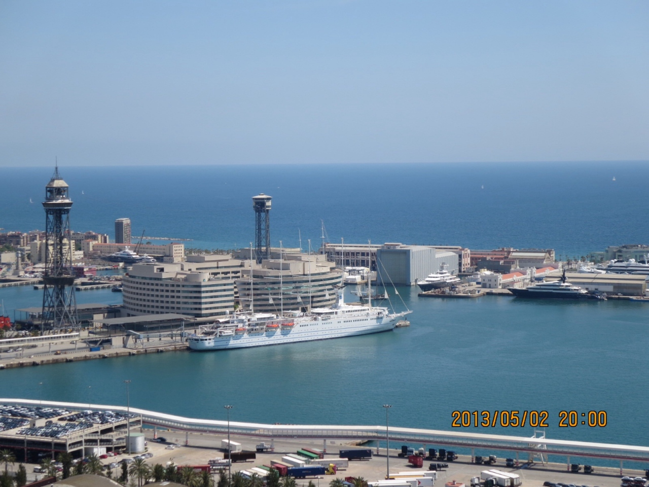 モンジュイックの丘から、バルセロナ港と地中海を眺望。