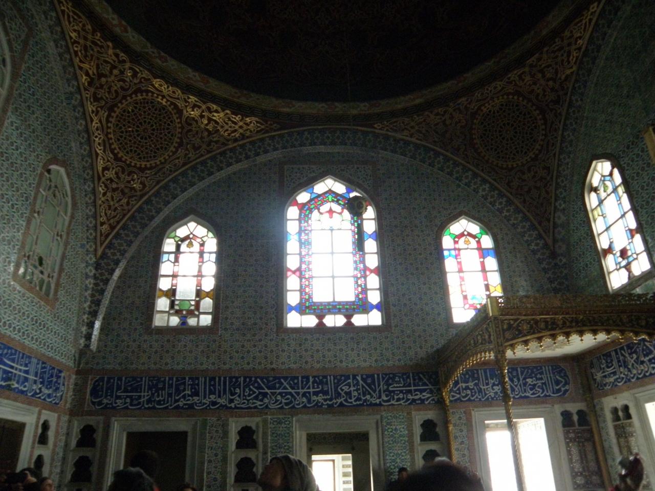 地下宮殿の次はトプカプ宮殿に向かいました。感想は・・・微妙です。確かに広く、きれいはきれいなのですが、広すぎるためか、家具がすくないためか、見るべきポイントというか、へその様なものがありません。タイル・モザイク・天井、確かに美しいですが、ちょっと発散気味な印象です。