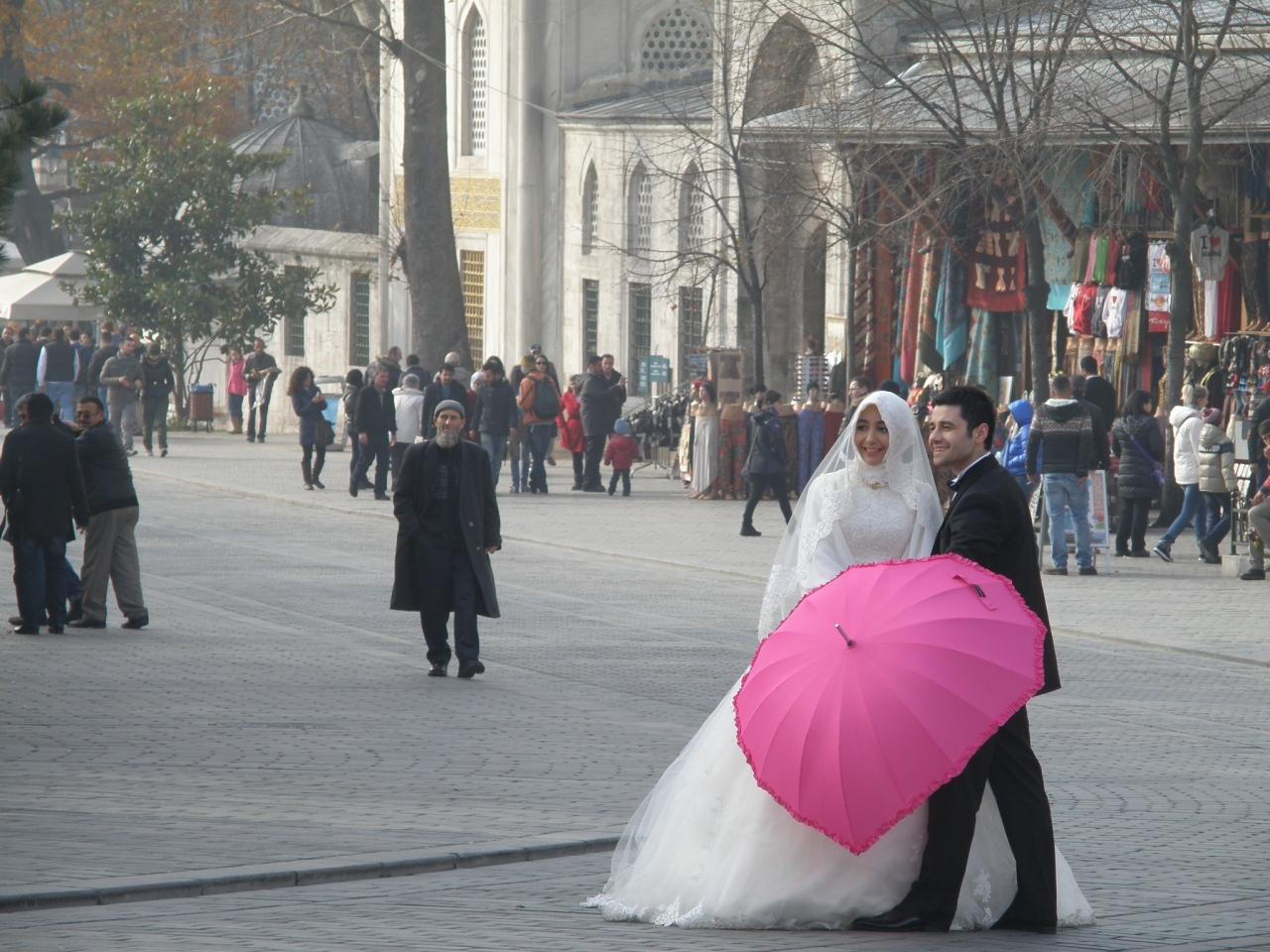 トプカプ宮殿を出ると新婚カップルが写真を撮っていました。一緒に観光していた観光客が猛ダッシュして撮影!(自分を含む)