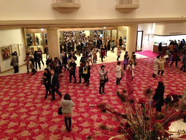 郵送で送られてきた招待券を握りしめて大劇場ホールに着くと、座席抽選のための列が作られるのを待ちます。