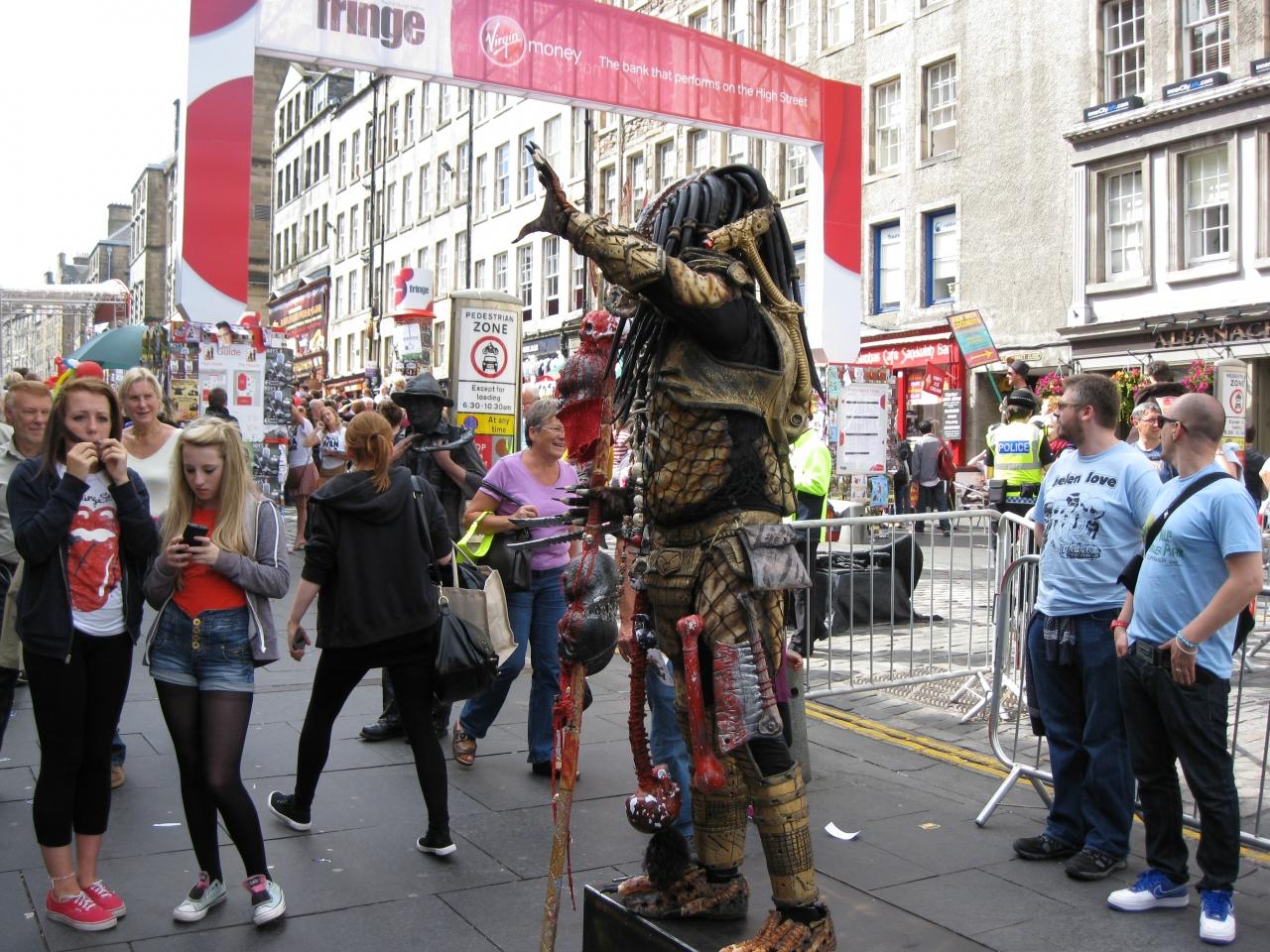 エジンバラフェスティバルの一環で行われているフリンジという催しのため、街なかはいろいろなパフォーマンスをしている人でいっぱい。