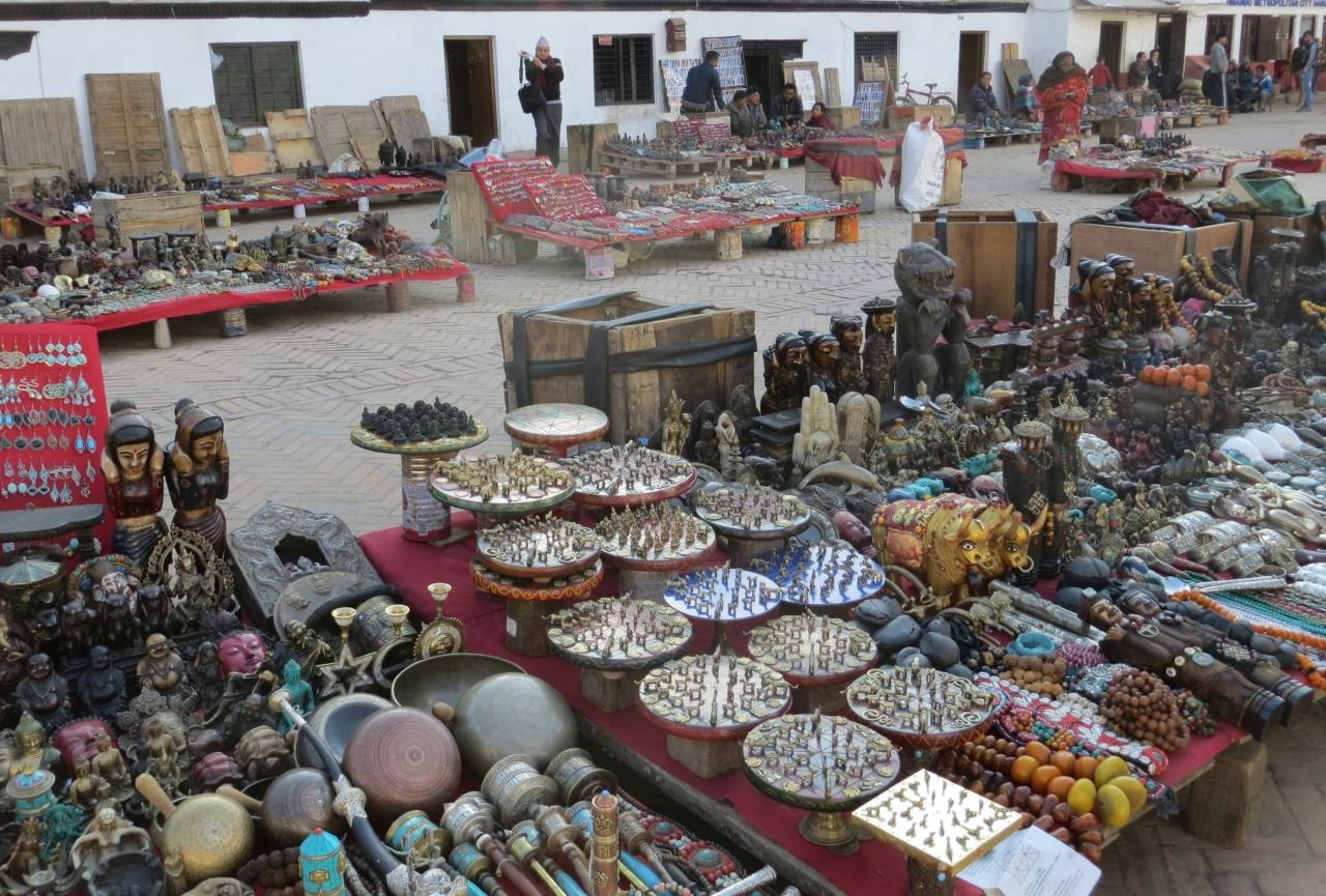 バグワティ寺院の周りの商店街の光景です。バグワティ寺院の一階部分の一部も、商店として使われているようです。