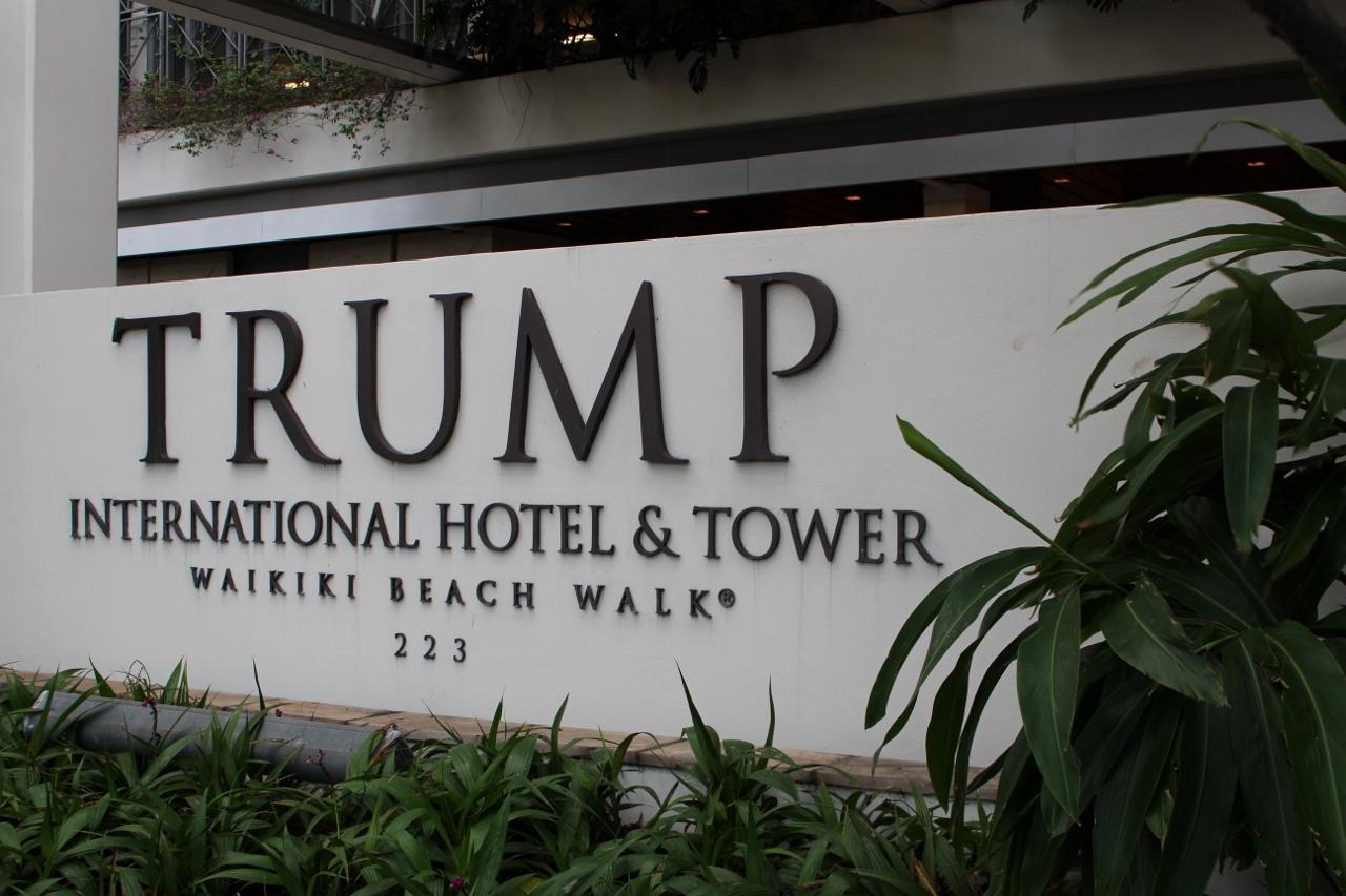 ブレイカーズホテルの看板を見ながらトランプに帰ります。 -