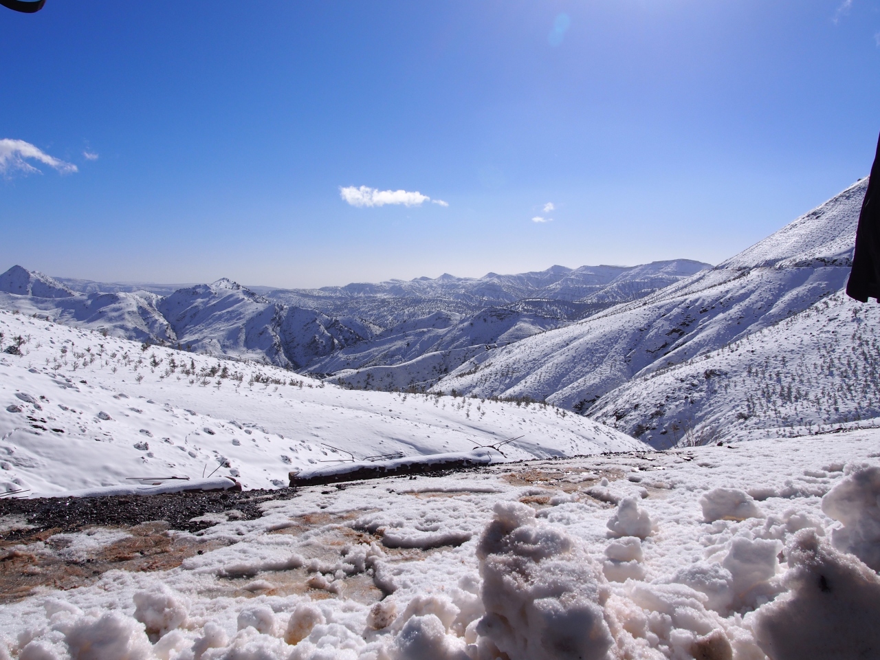 前日の雨でアトラス山脈は雪景色。一日早ければ通行止めだったそうです。 -