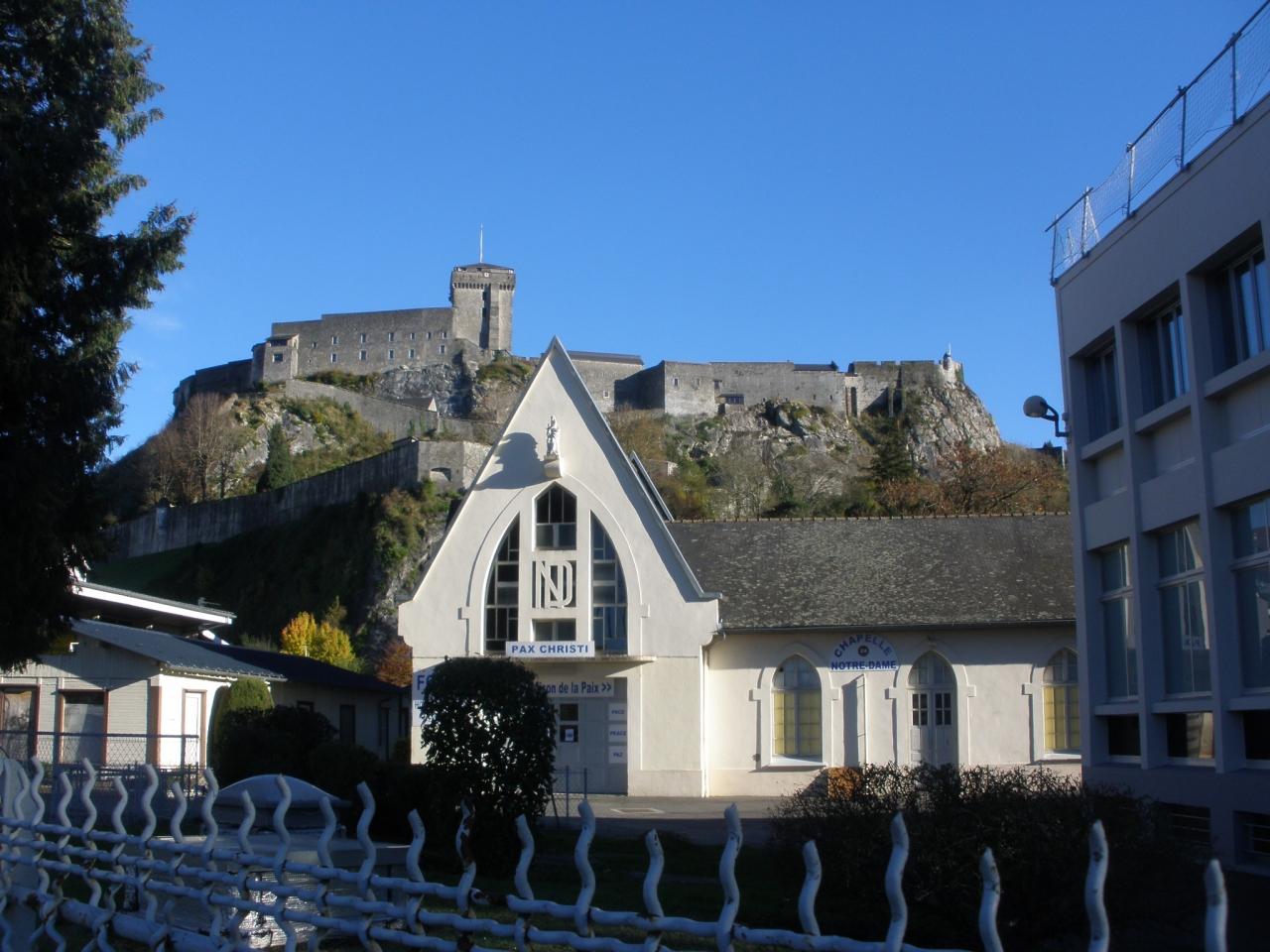 聖ベルナデット博物館前から城塞を見上げて