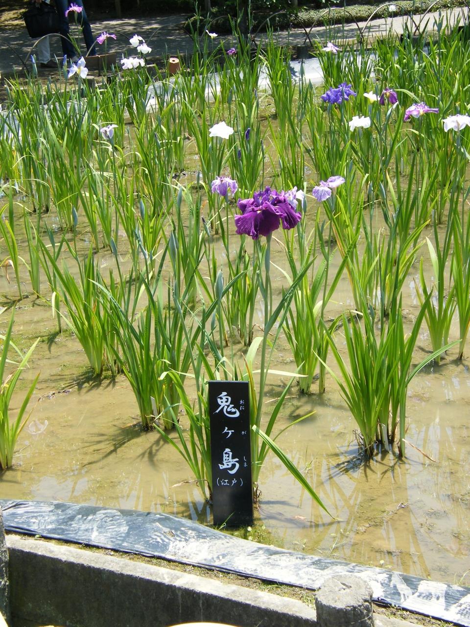 菖蒲田には一番から順に番号が振ってあります。株の植え付けからの年数がそれぞれ違うようです。花菖蒲の品種による区分けではないようでした。株の植え付けから3年で植え替えらしい。花の名前の下に江戸と書かれているのが江戸花菖蒲の様です。肥後、野生種などの表記が見られます。作出地なんでしょうね。