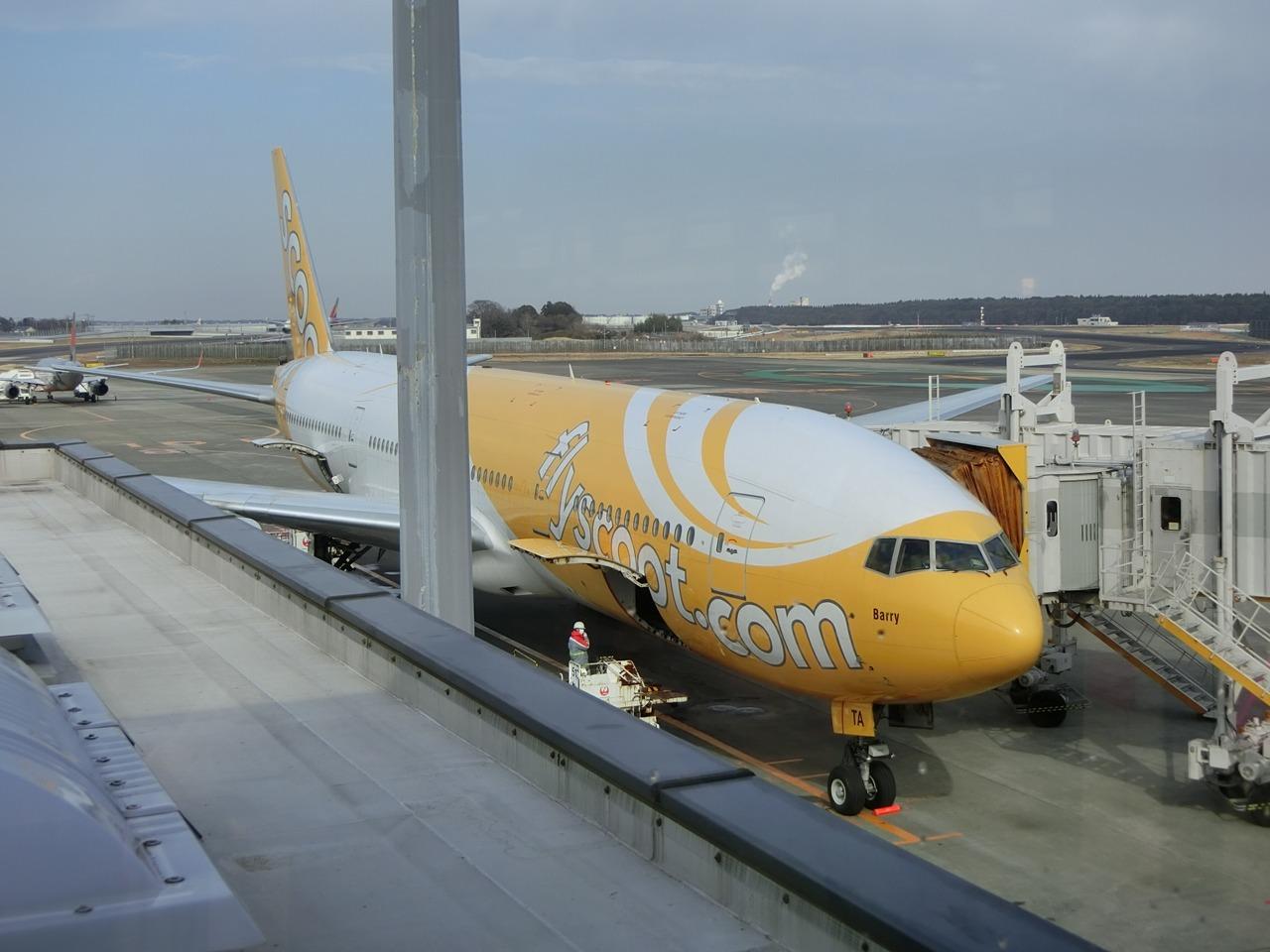 今回利用したSCOOT航空。とにかく寒い!ライダースのファスナー上まで閉めて、その上にブランケット羽織っても寒い!