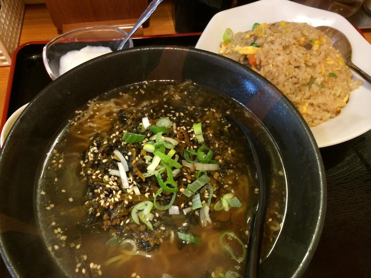 高菜麺と半チャーハンのセット680円。