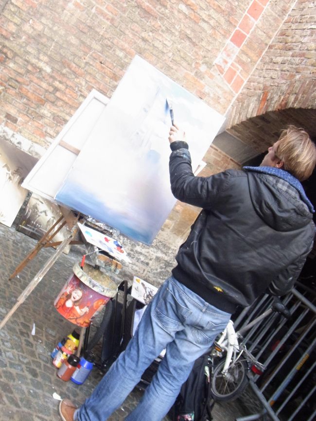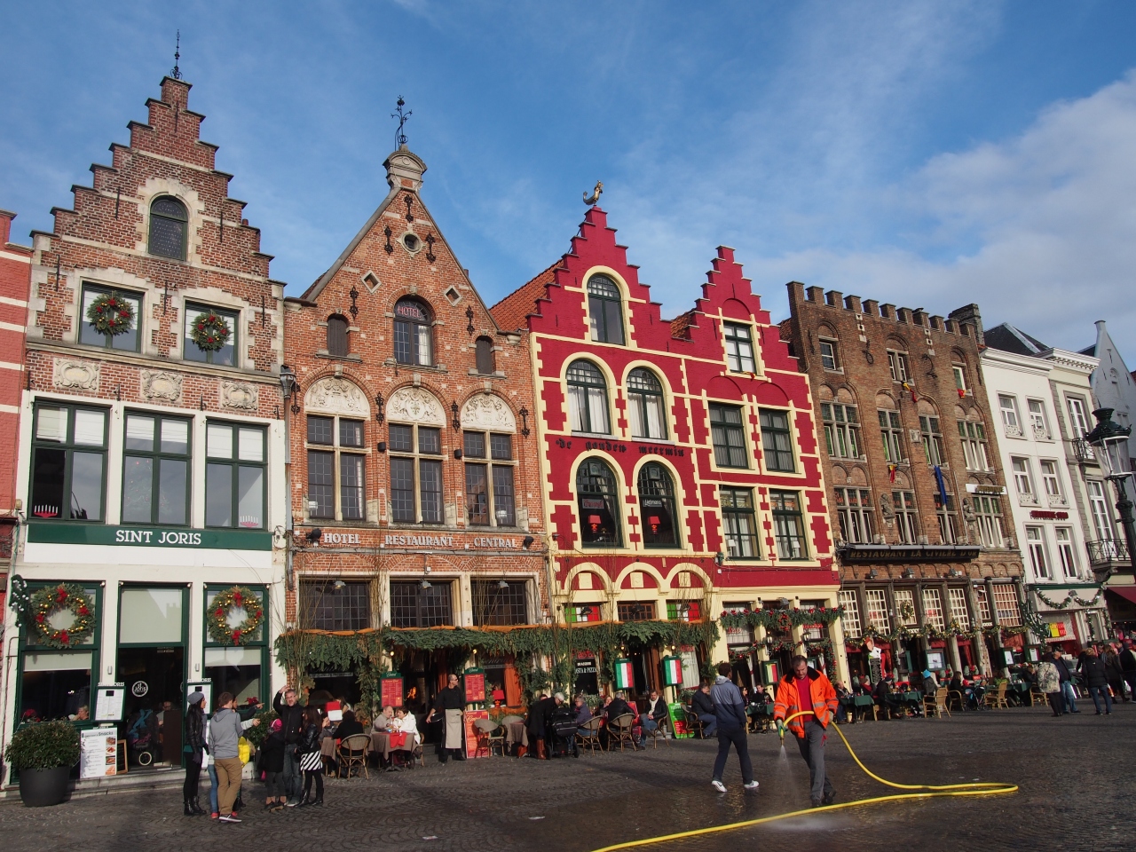 駅前の道路を渡って、ブルージュの街中へと歩きます。