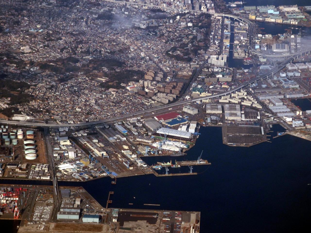 ほぼ定刻に羽田空港を離陸して東京湾上空を上昇します