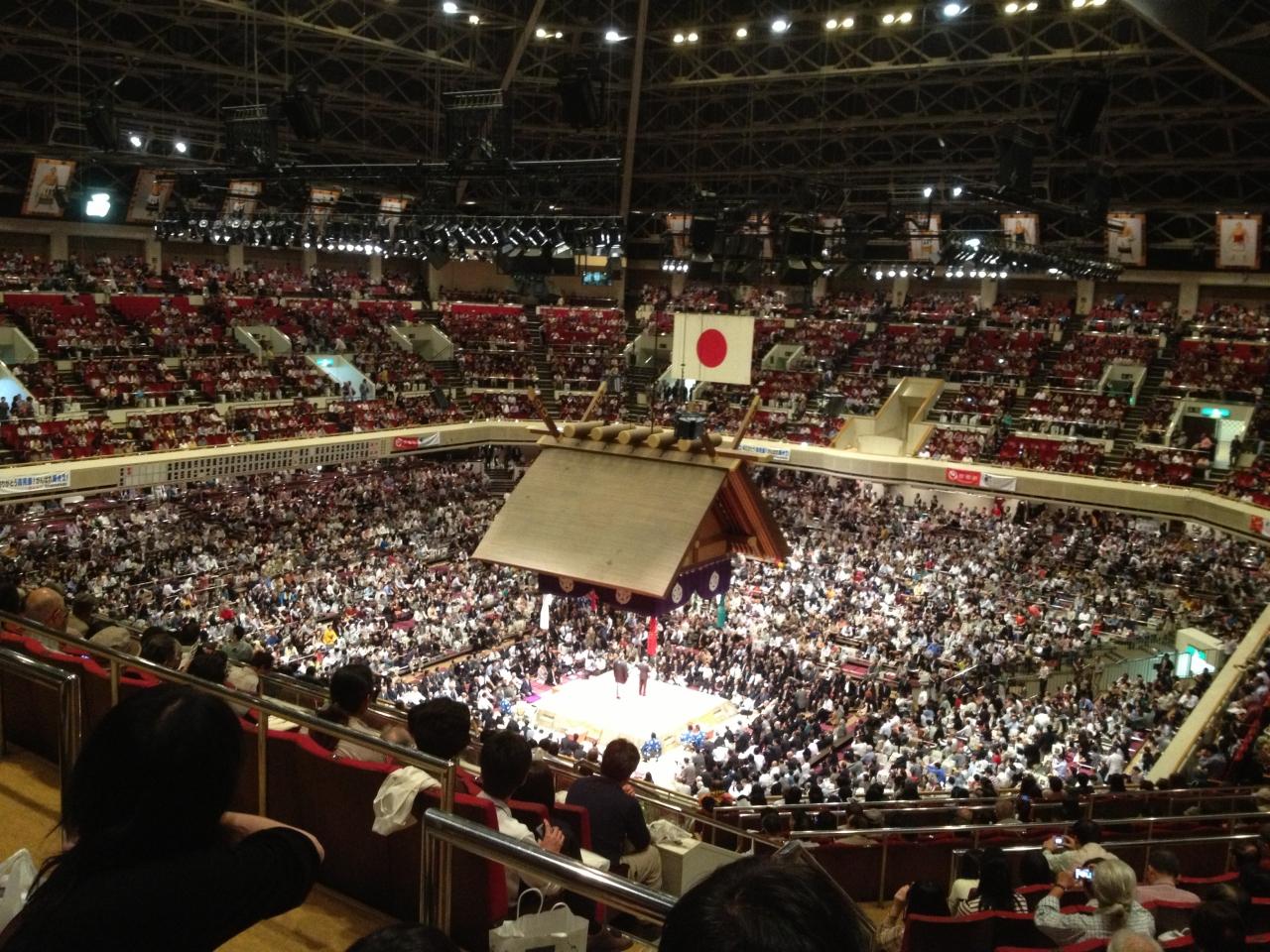 両国ではちゃんこを食べようと思っていたのですが、偶然高見盛の引退セレモニーをやっていたので国技館に入りました。途中で飛行機の時間が迫ってきたのであえなく退散しました