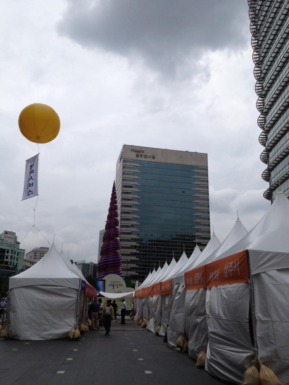 世宗路に広がる光化門広場でも、戦争に関する展示会が行われていました。