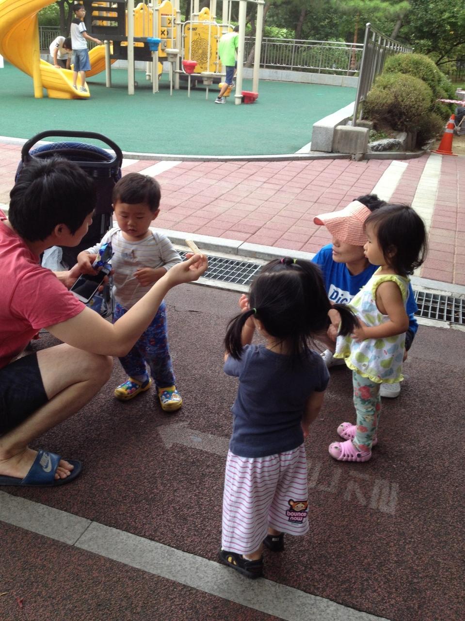 お菓子をあげる・あげないでモメています。