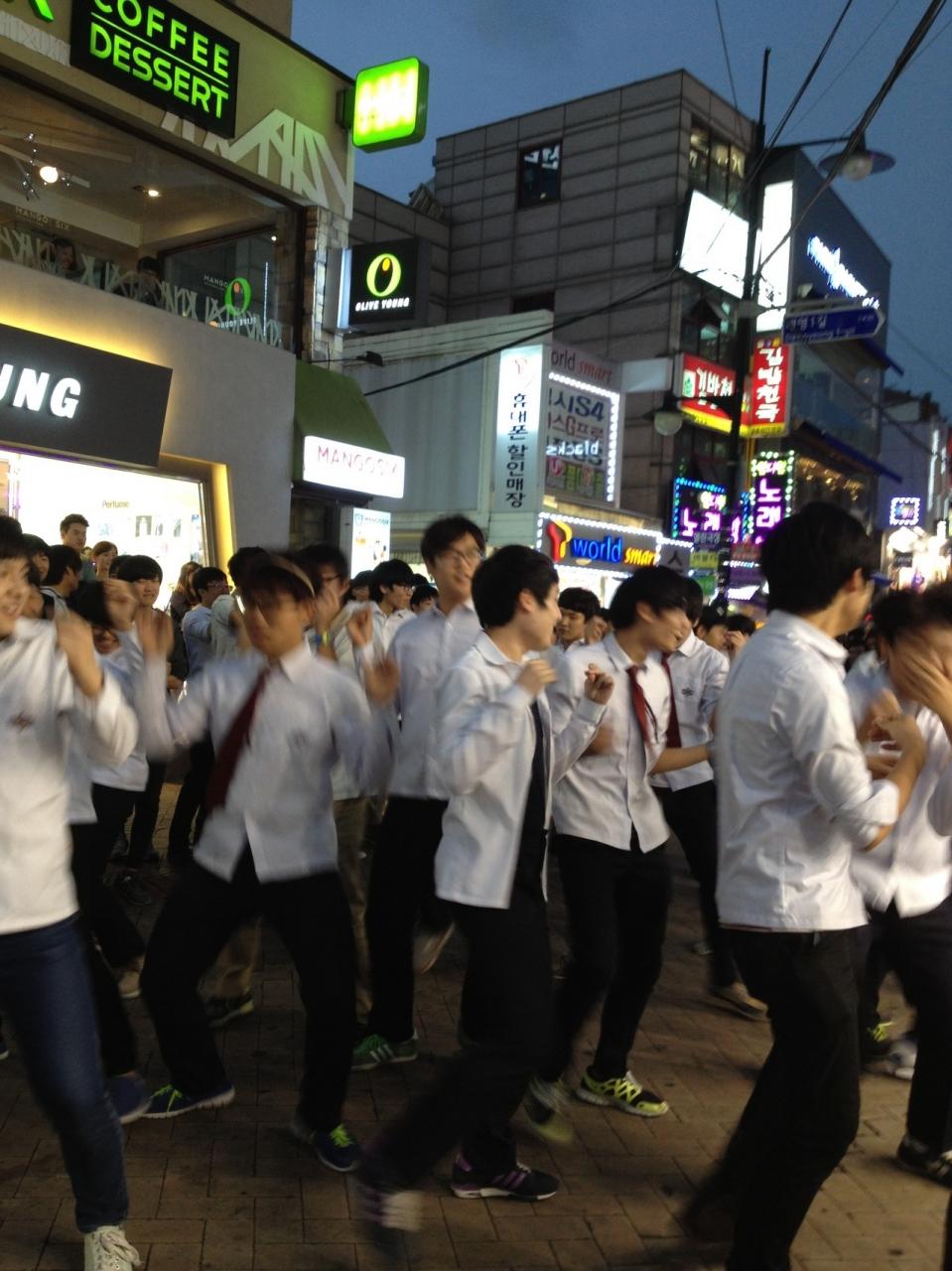 大学路に戻ると高校生ナムジャたちが路上パフォーマンス中!
