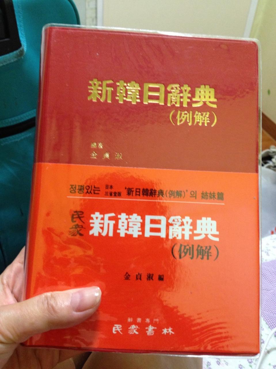 宿に戻り〜新村で買った韓日辞書を広げてご満悦な私。W19,000.