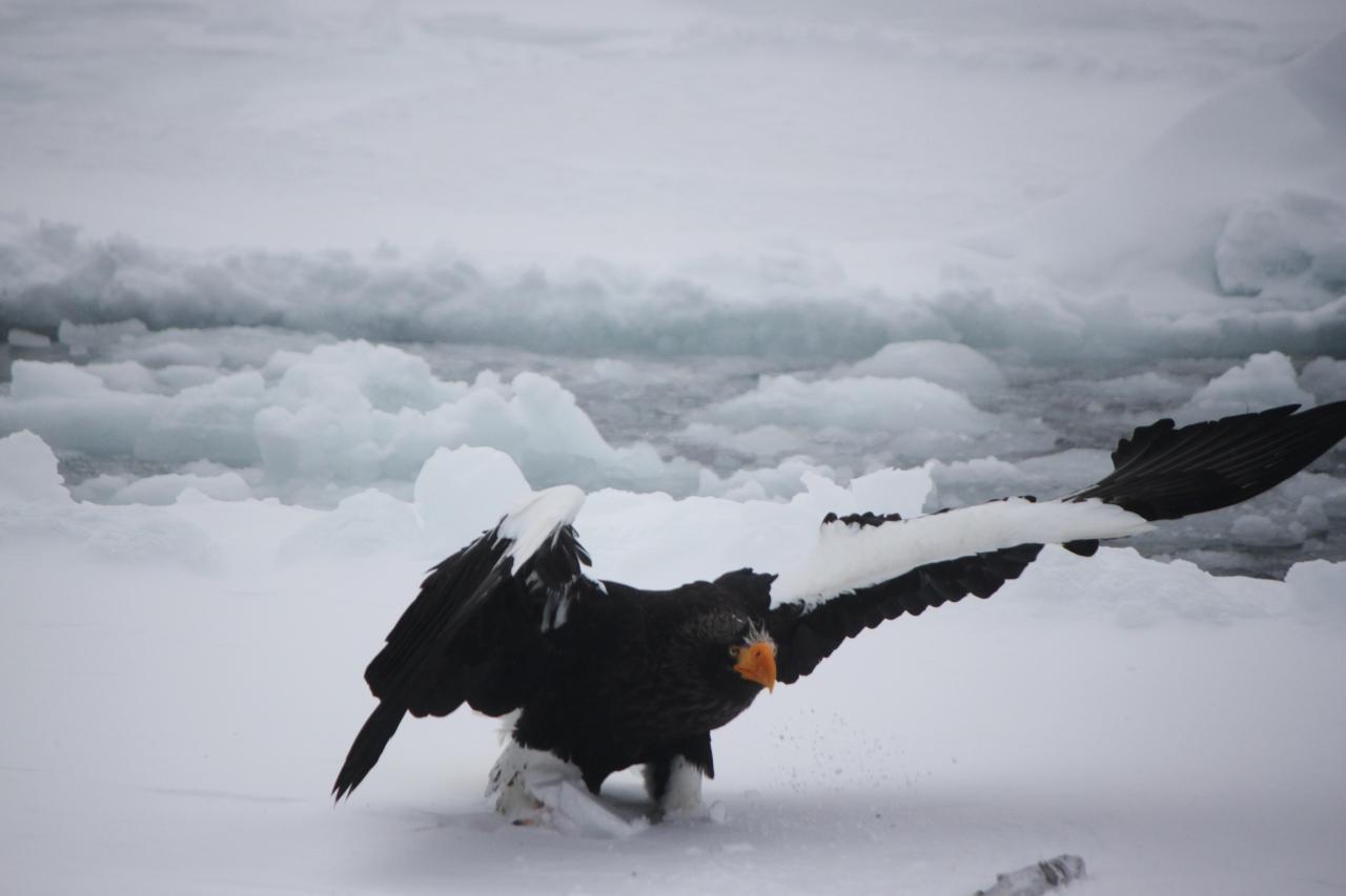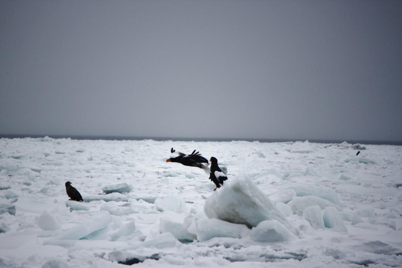 流氷の上のオオワシ&オジロワシが見られるのは世界でもここ、羅臼だけ!