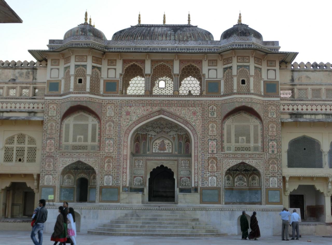 8世紀頃からラジャスタンに勢力を広げたラージ・ブート族による建築・美術様式とムガールの特徴がミックスしている、って事はラージ・ブート様式が既にイスラムの幾何学的な規律とヒンドゥー世界独特の色彩の造詣の融合なのだから、かなりイスラム傾向が強いって事ですね -