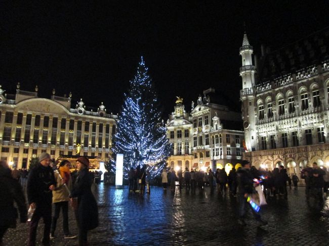 夜が長い冬のヨーロッパ。ブリュッセルでは、グラン・プラスで音楽と光のショーがあり、サント・カトリーヌ広場ではクリスマスマーケット。グラン・プラスとサント・カトリーヌ広場までの通りもイルミネーションに彩られていました。