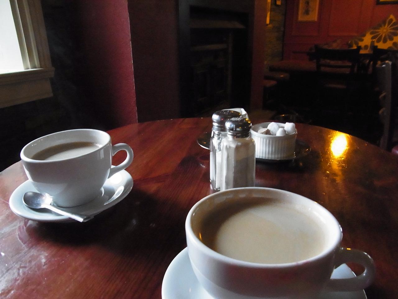 どこかで休みたかったので、ドゥーリンホテルの方に昨日夜に入ったFITZ BARの開店時間を聞いたら、「コーヒーくらいだったら出せると思うわよ」と、バーに内線をかけてくれました。寒い中、こうした親切、とても助かる・・・。 -
