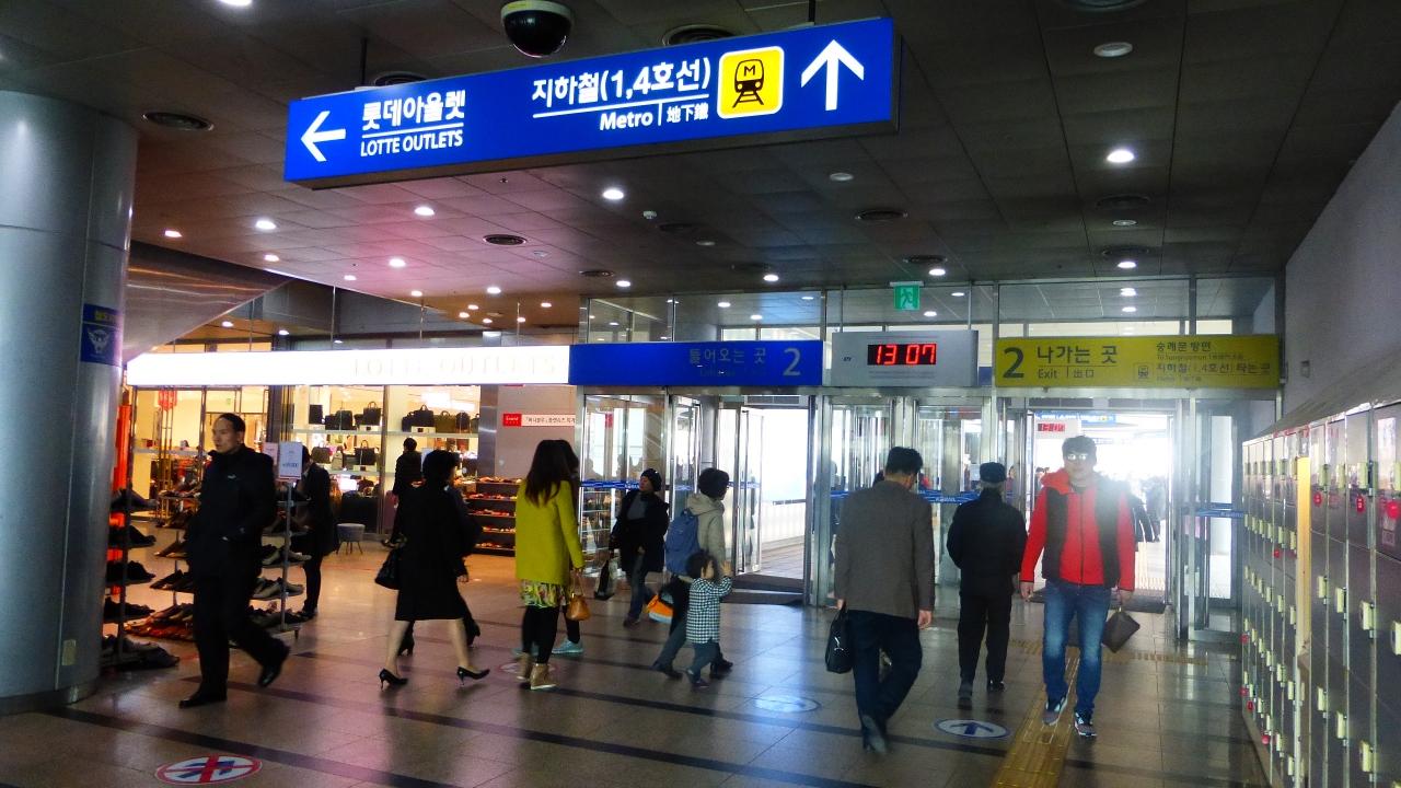 ソウル駅のコンコース内を突き抜けて行く感じです。