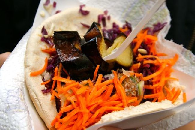 名物のファラフェル(ひよこ豆のコロッケ)のピタ。味はまあまあ....とにかく量がすごかった。