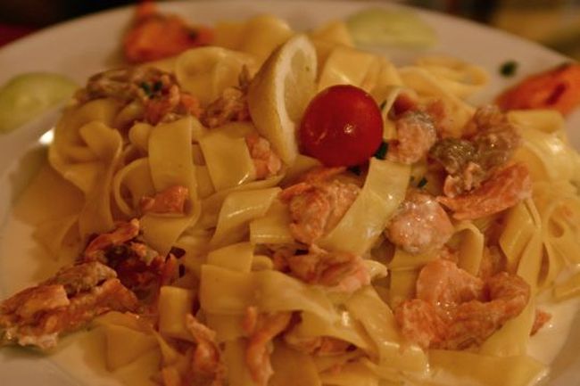 夕飯はホテルのすぐ隣のイタリアンレストランで、ラザニアとサーモンのクリームパスタ。....コレが今まで生きてきた中で一番美味しいラザニアでした。マンマが作ったラザニアって感じ。また量もハンパ無く大盛りで大変でした。でも食べきった。美味しかった〜〜 また食べたい。