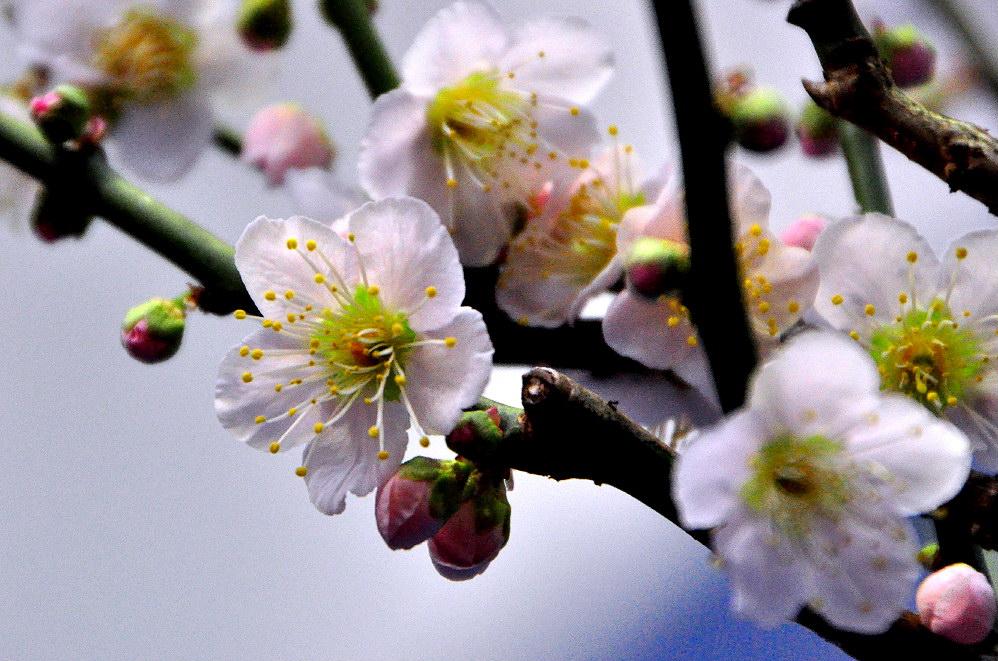 咲き終わりの時期に、散りゆく梅の花を、