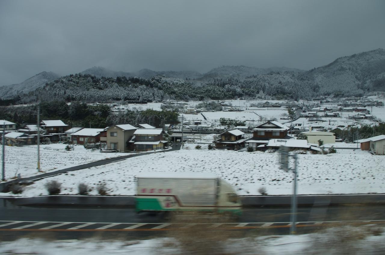 電車が発車して垂井駅を過ぎたら、雪がちらつき始めました。