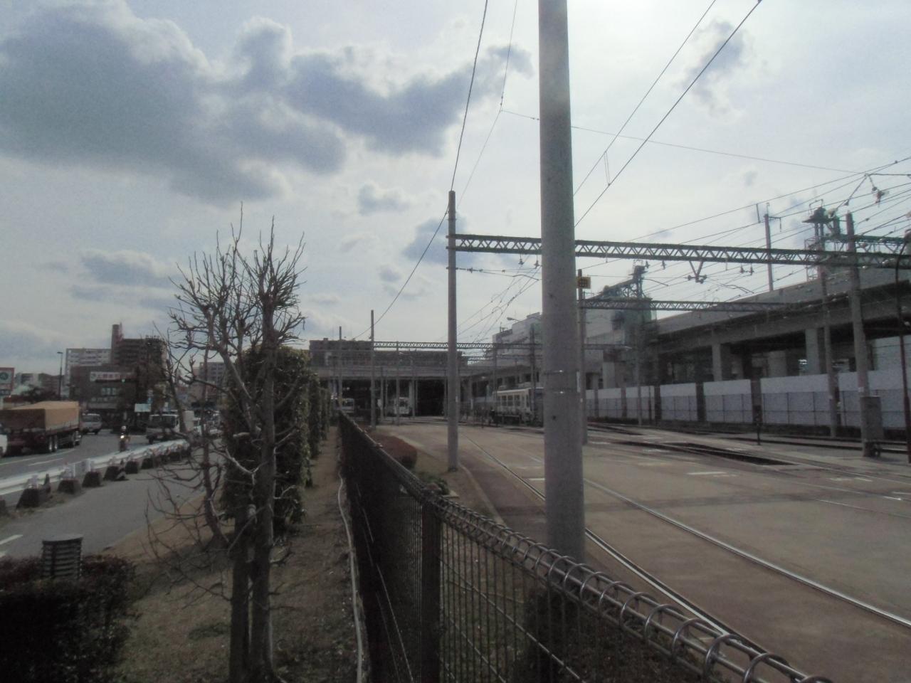 ここから隣駅の新町まで、専用軌道を走る。 -