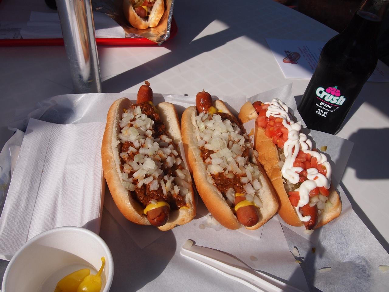 左二つは一番人気のチリドッグ