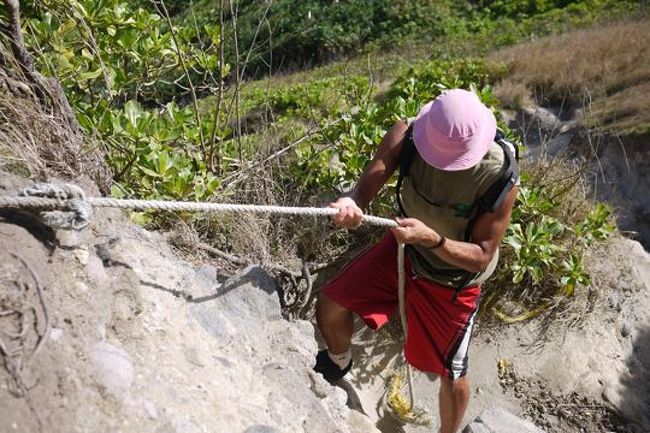 結構な崖の付近を下ったり、ロープで下りたりと、結構ハード。なんだか不安になってきた....特に同じ道を戻る帰りが心配。