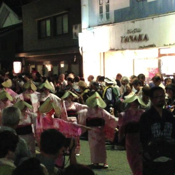 9月1〜3日にかけて、富山市八尾町で開催される祭り。祭り期間は、とにかく、多くの人で街がごった返している。踊りは、町内ごとにだいたいの計画が立てられているが、予定通り行かないことが多い。街(町内)での踊りは。雨が降っていると、その間はいっさい行われない。晴れることを祈るばかりだ。