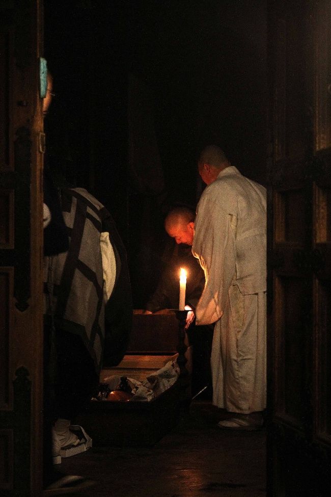 お松明に先導され上堂した練行衆は、宵から深夜、さらに未明にかけて、お堂の奥深き内陣において真摯な行法にいそしむ。